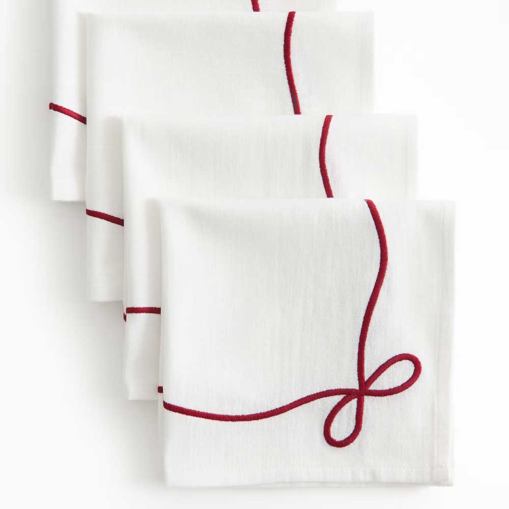 4-pack Embroidered Napkins White/bows