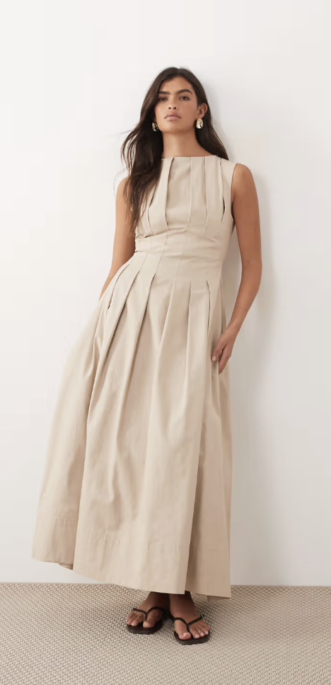 ARRANGE cinched waist pleated maxi dress in stone