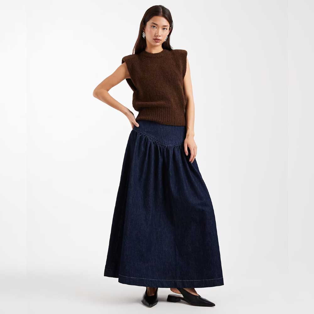 ASOS DESIGN denim drop waist maxi skirt in rinse
