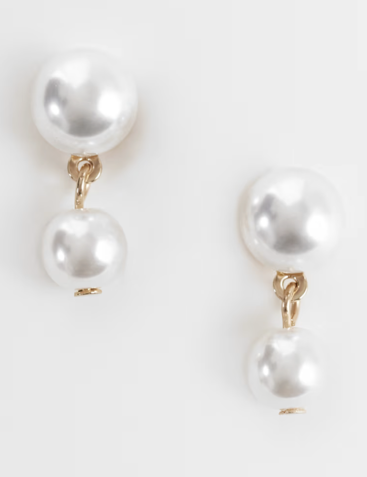 Be the first to review “ASOS DESIGN double-drop faux-pearl stud earrings in gold tone”