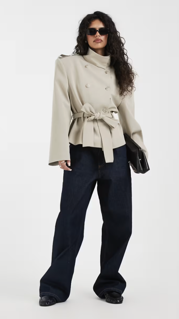Be the first to review “ASOS DESIGN extreme shoulders cropped trench coat in stone”