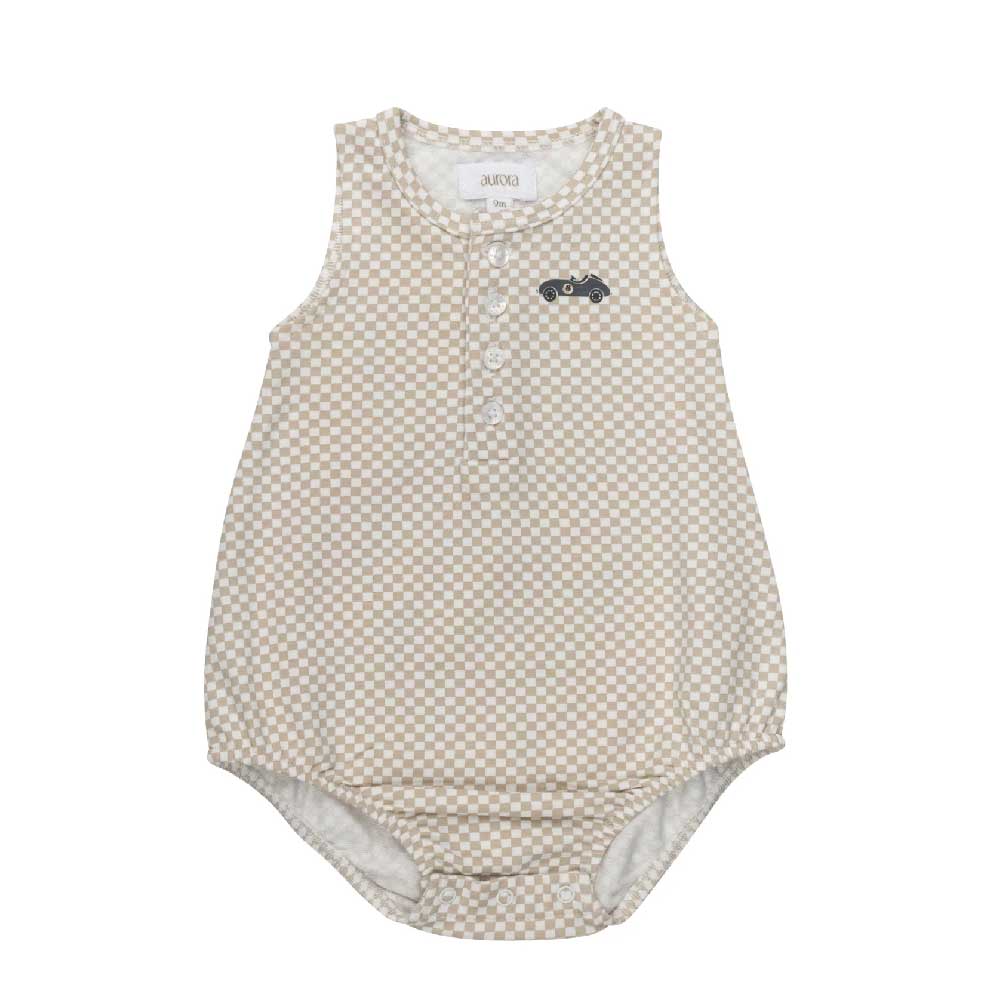 Aurora Classics Boys Romper – Tan – Checked Race Car