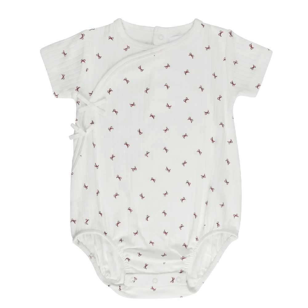 Aurora Classics Girls Romper – Ivory Red – Bow Pattern
