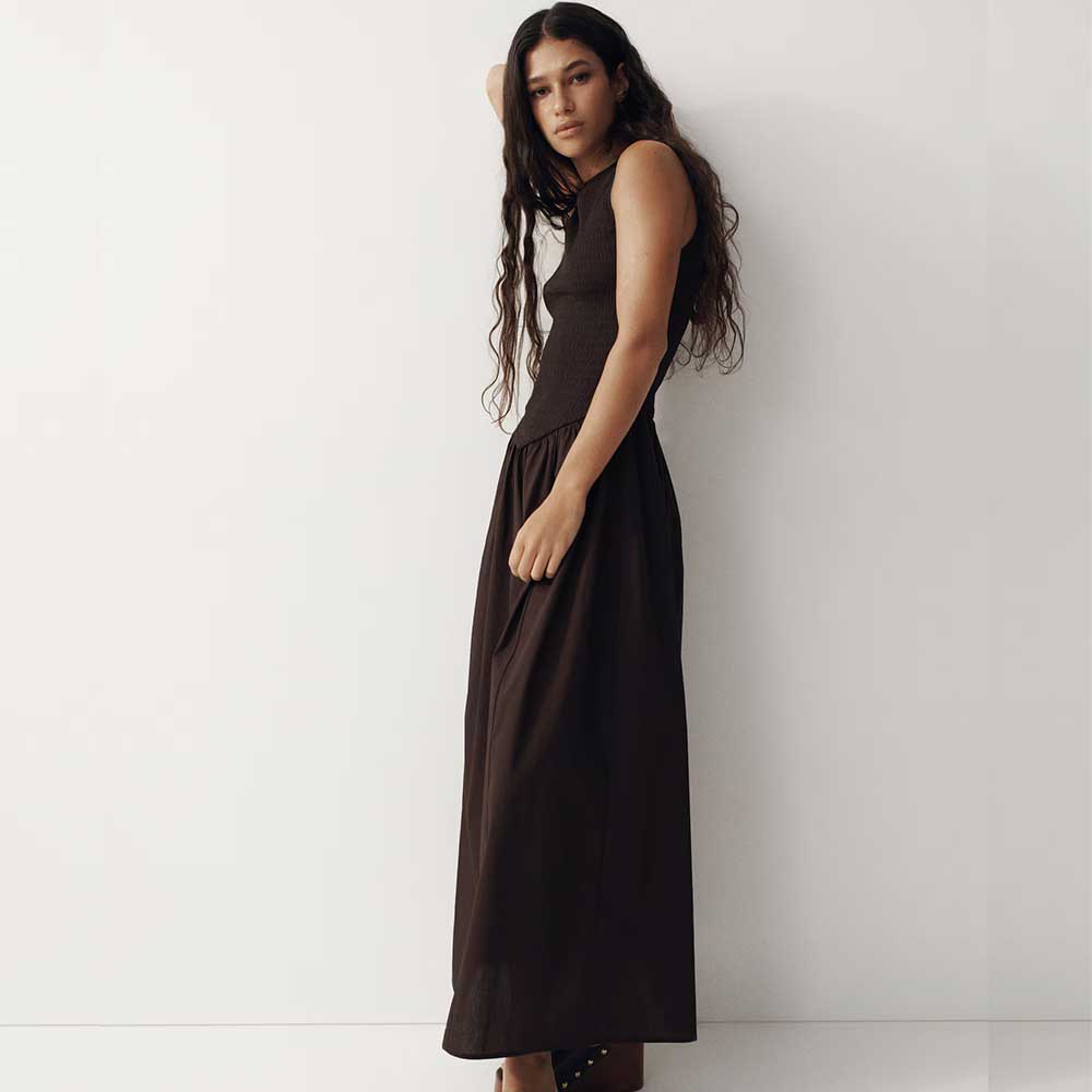 Be the first to review “Boat-Neck Midi Dress Dark brown”