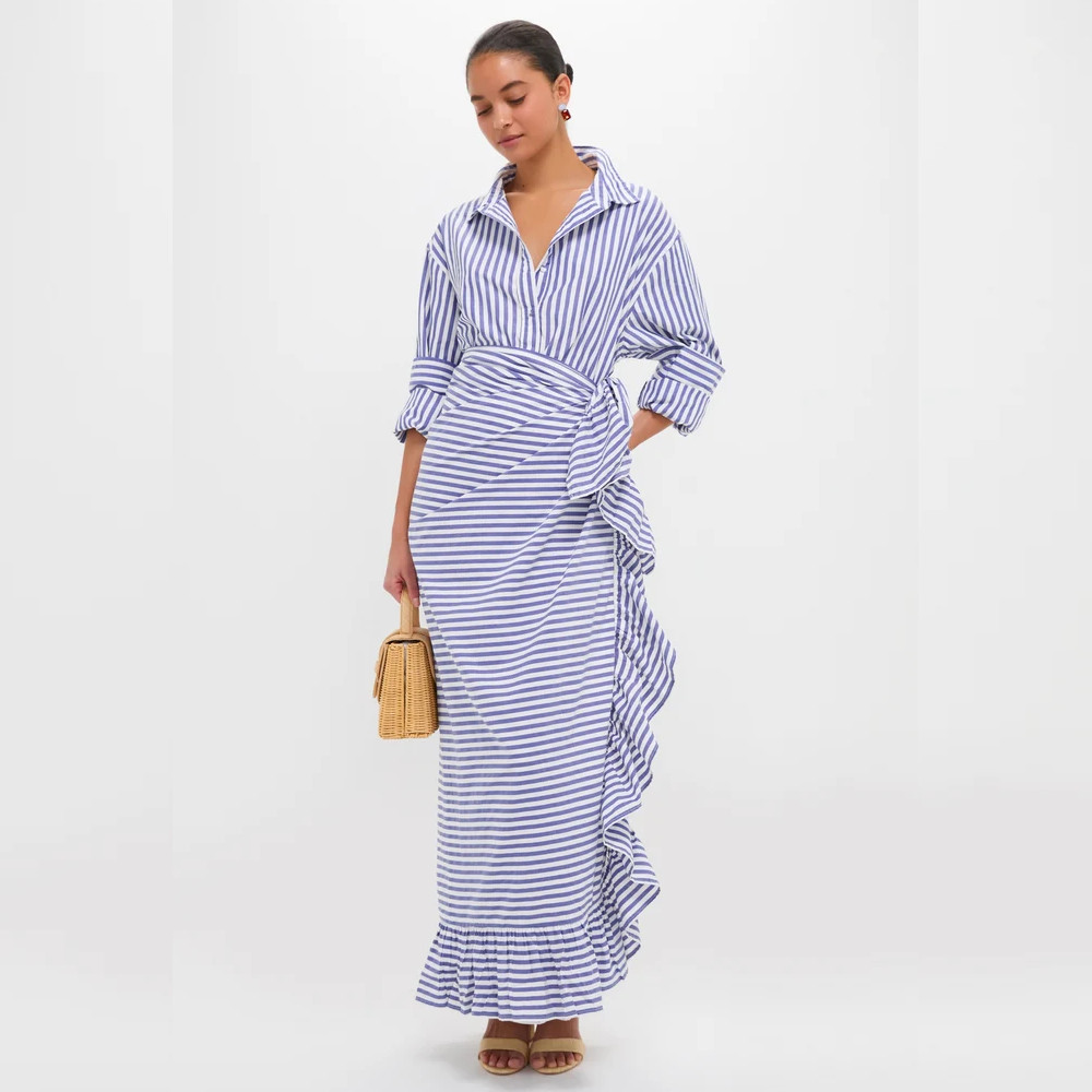 Coniglio Palm Beach Stripe Blue and white Ruffle Power Pareo