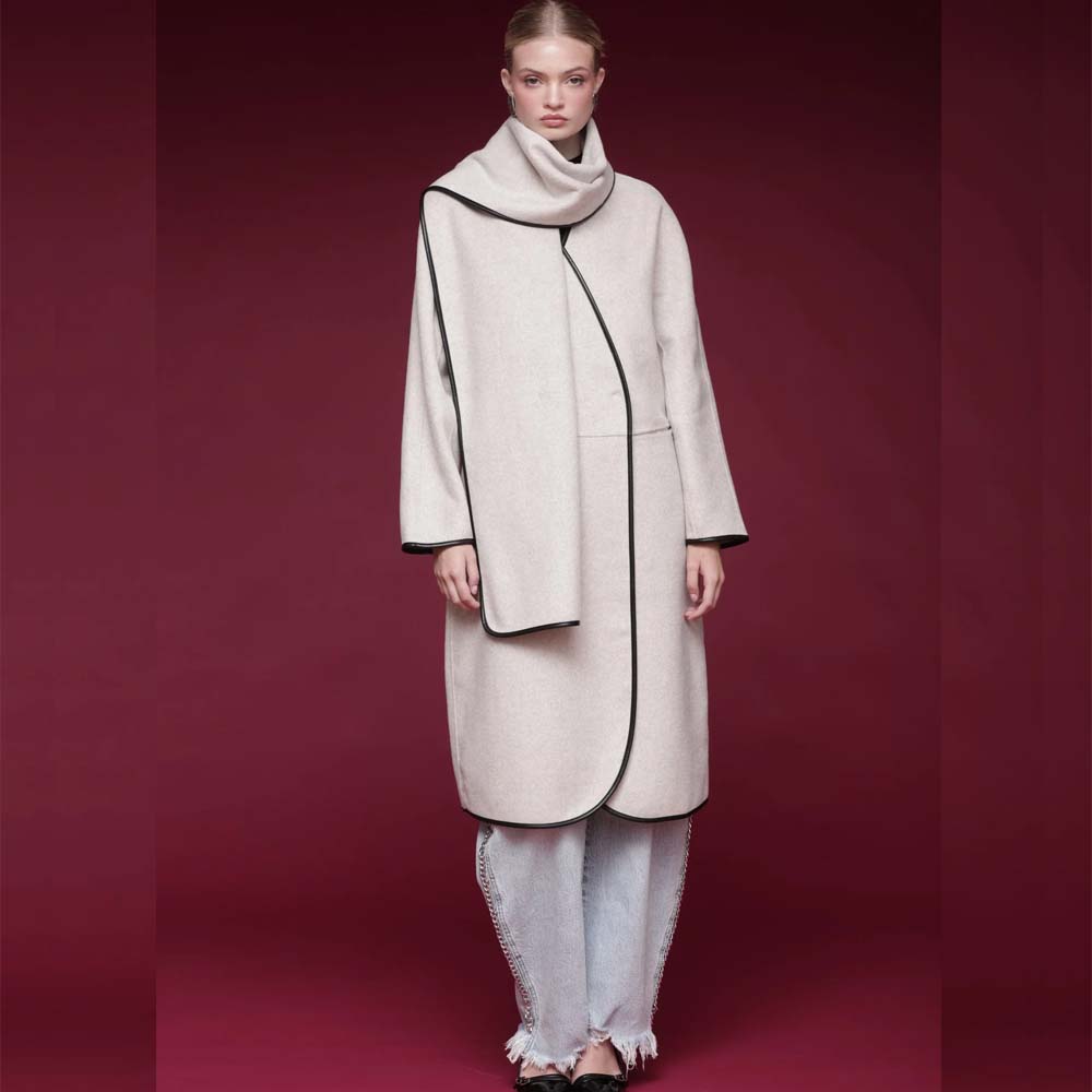 Be the first to review “Contrast Trim Wool Blend Scarf Coat Oatmeal”