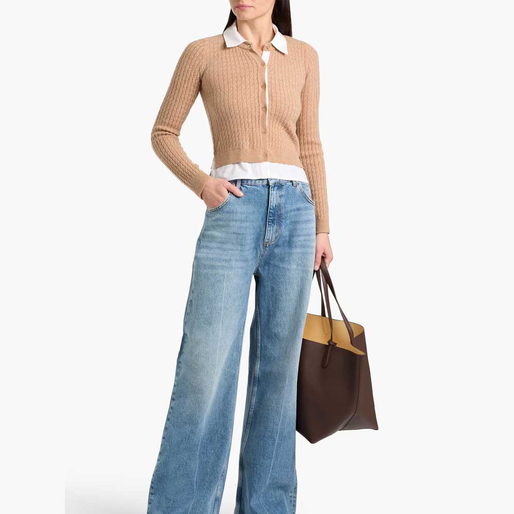 Cotton-blend poplin and cable-knit wool and cashmere-blend shirt