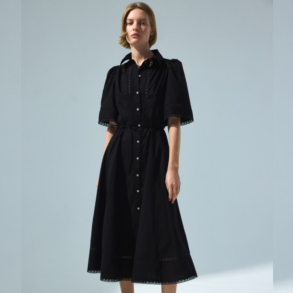 Be the first to review “Cotton Shirt Dress with Pintucks Black”