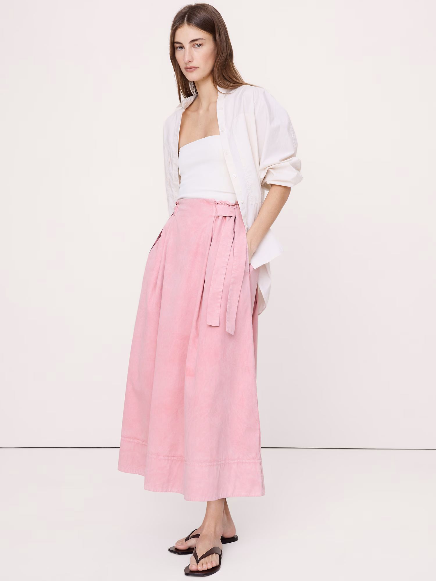 Cotton Twill Side-Tie Maxi Skirt