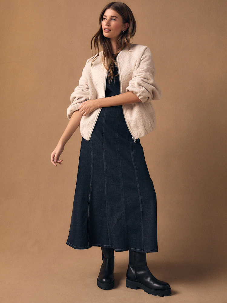 Be the first to review “Denim Rinse Full Seamed Midi Skirt”