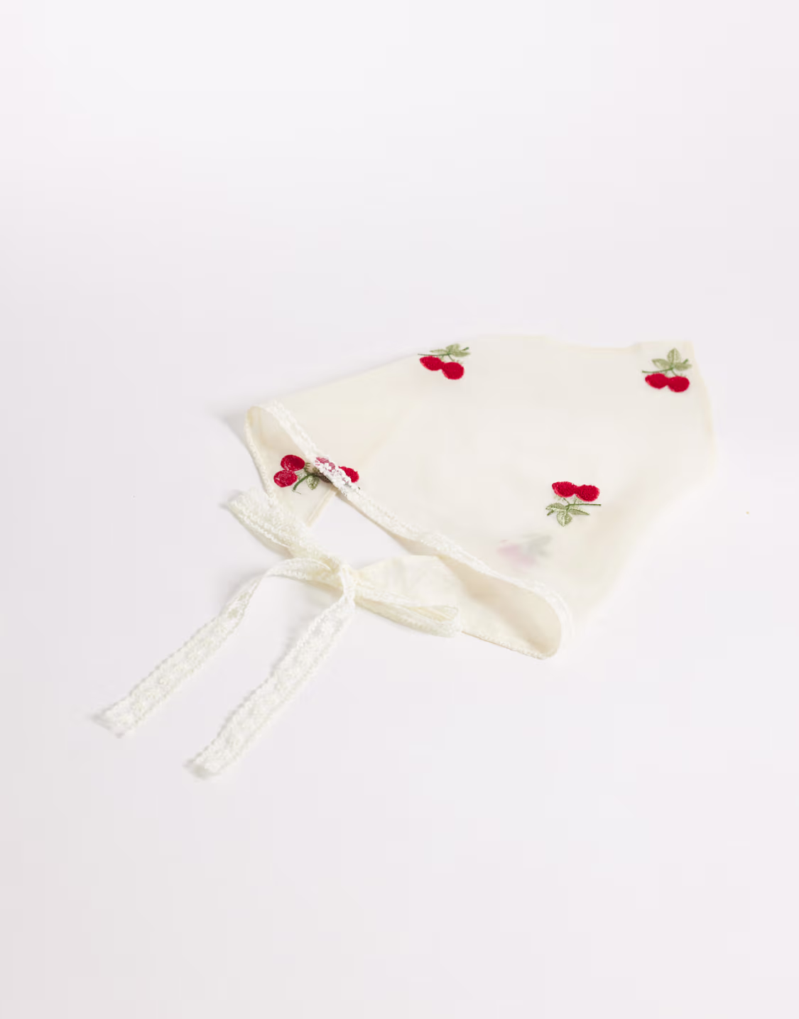 Be the first to review “DesignB London headscarf with enbroidered cherries in white”