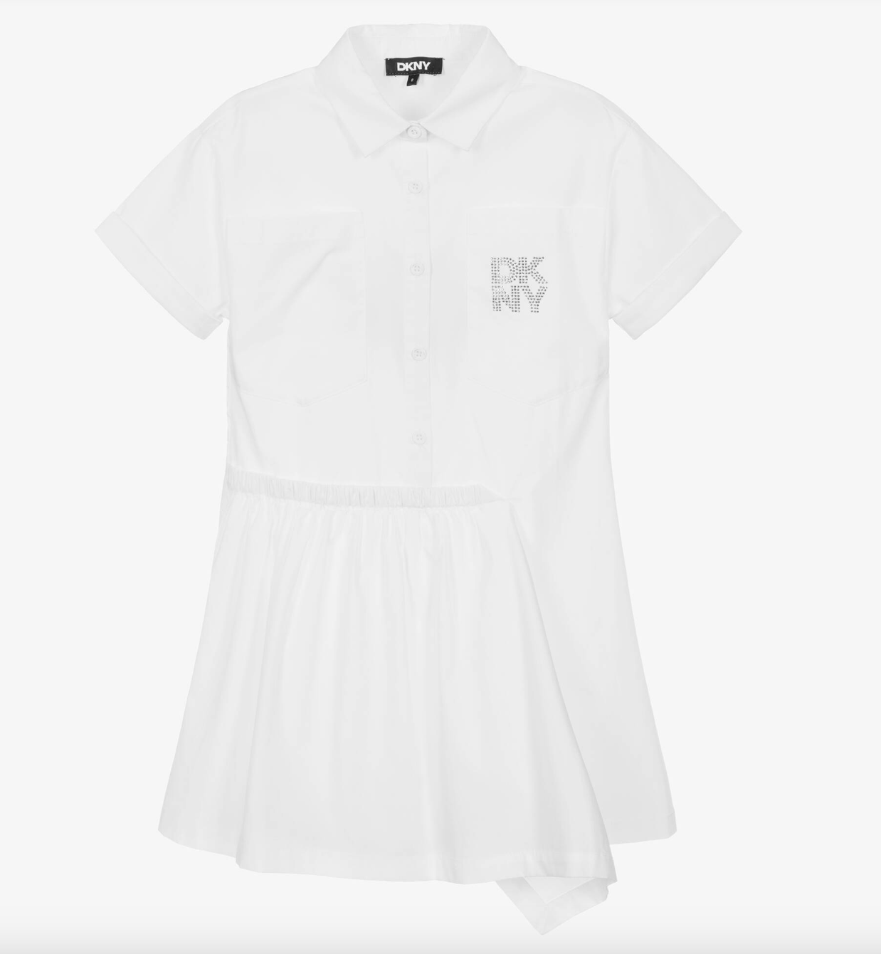 Be the first to review “DKNY Girls White Cotton Shirt Dress with Stacked Diamanté Logo”