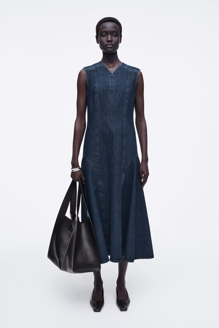 Be the first to review “DROPPED-WAIST DENIM MIDI DRESS”