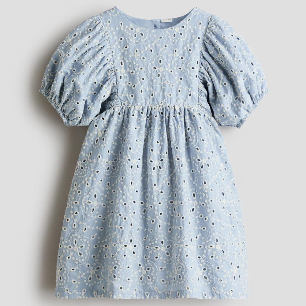 Eyelet-Embroidered Cotton Dress Light blue