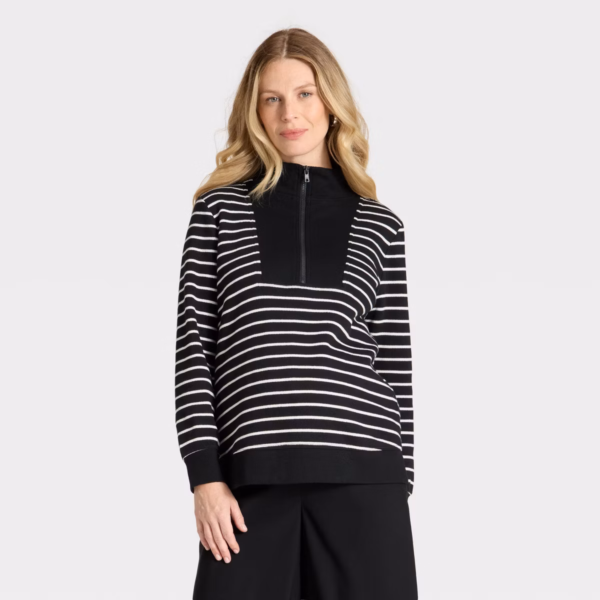 Fashion Leisure Maternity Pullover Sweatshirt – Isabel Maternity by Ingrid & Isabel™ Black/Cream Striped