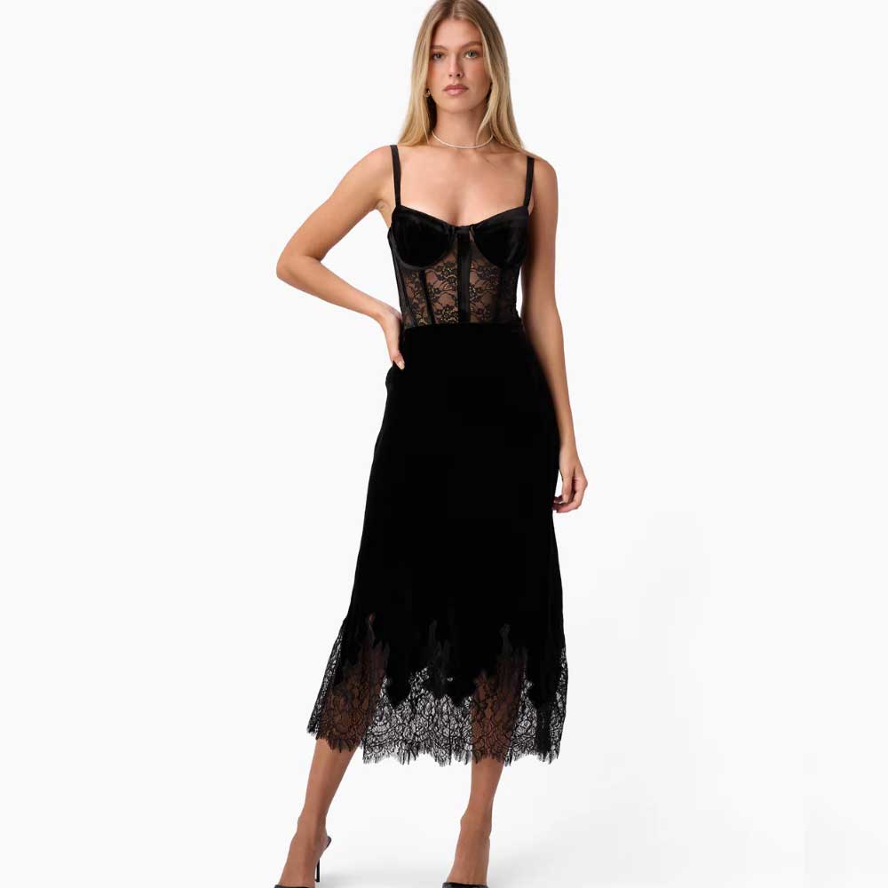 Georgiana Velvet Midi Skirt Black
