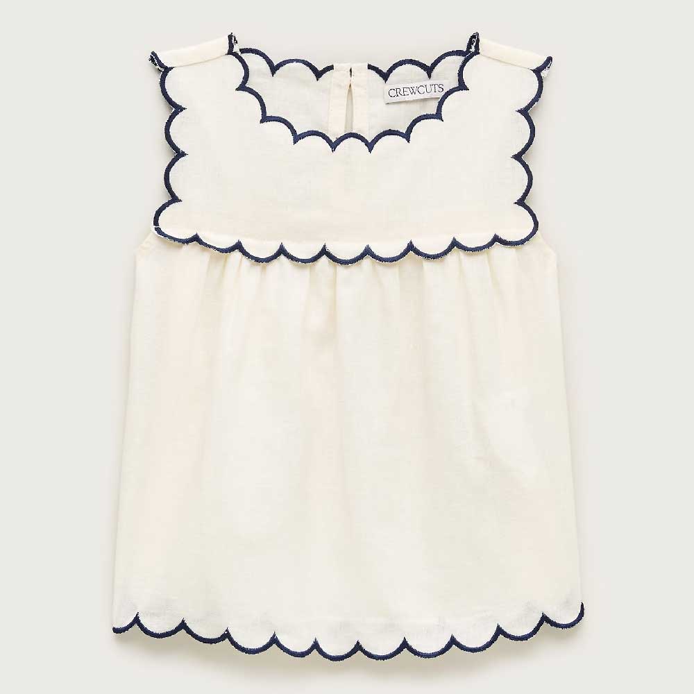 Girls’ scallop-trim top in linen blend