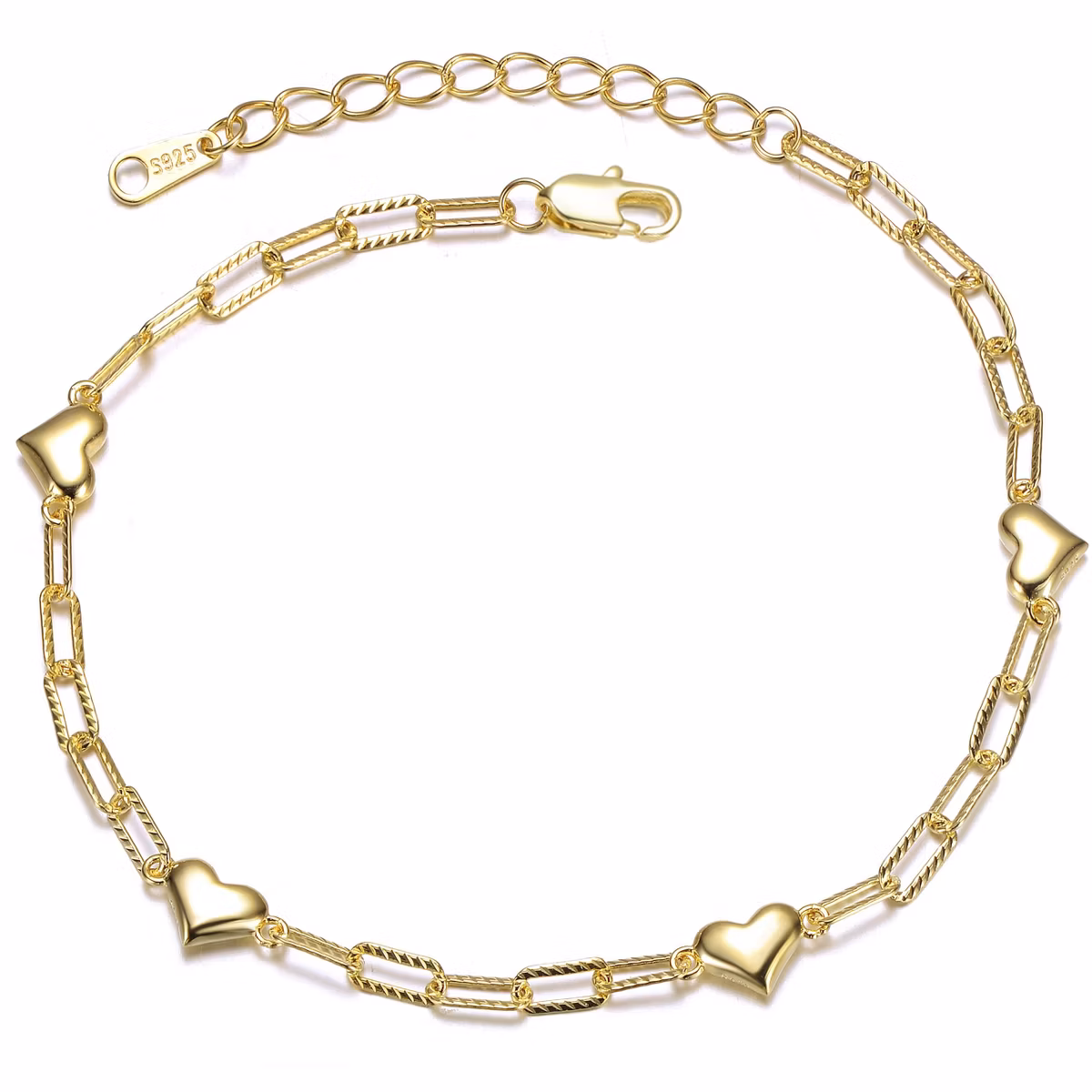 Guili 14K Gold Plated Adjustable Bracelet with Heart Link Chain