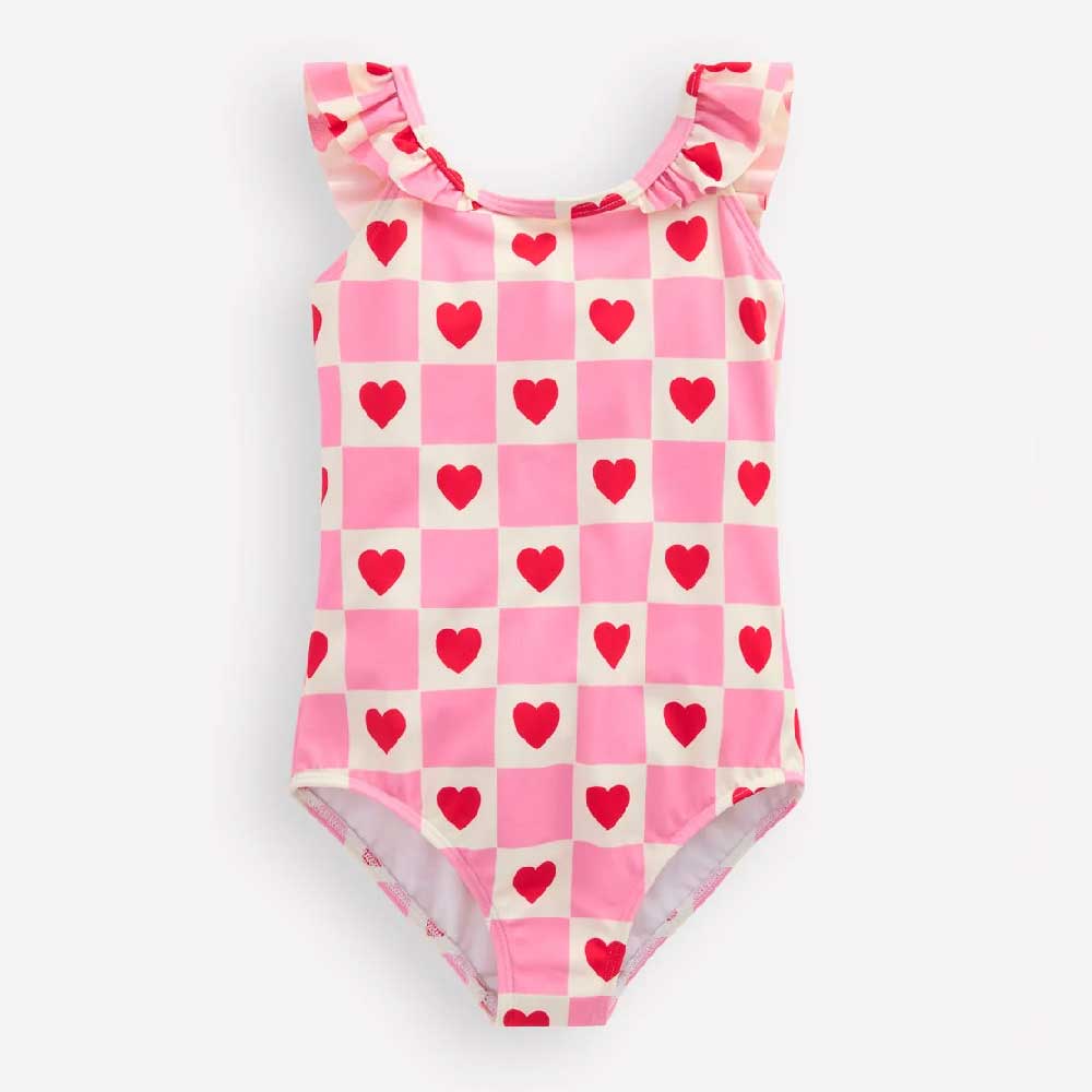 Be the first to review “Hallie Frill Strap Swimsuit Bubblegum Pink Heart Stamp”