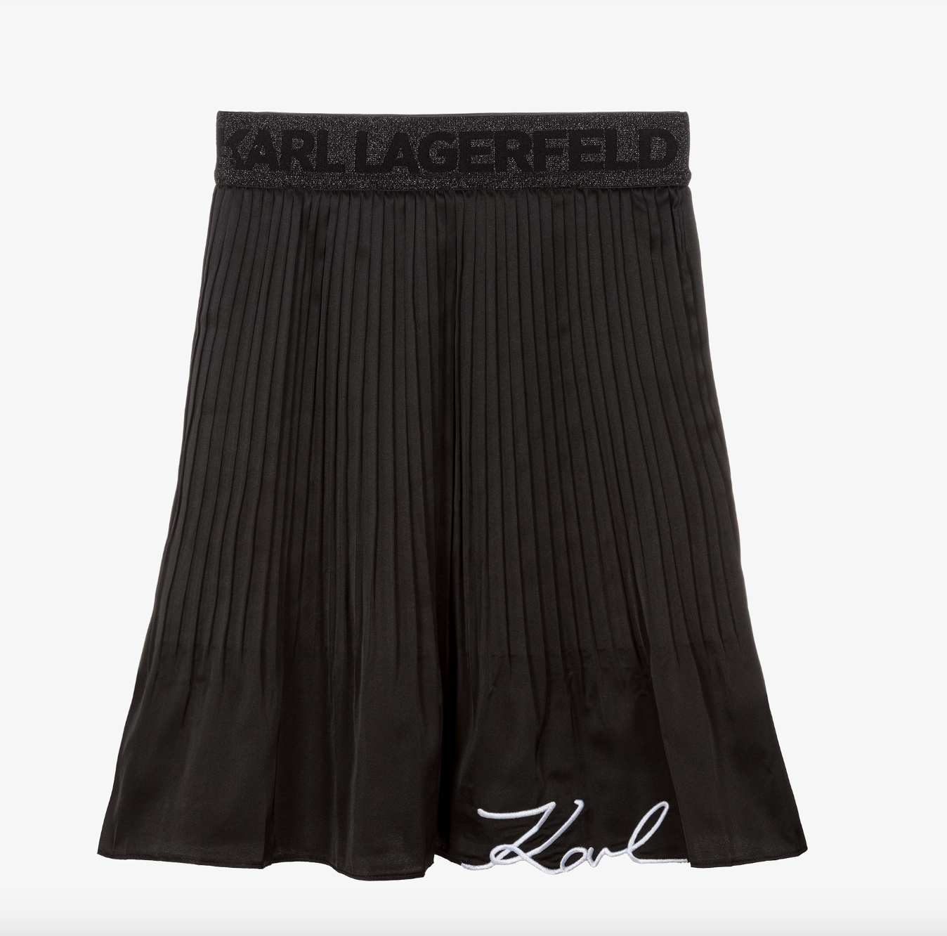 KARL LAGERFELD KIDS Girls Black Pleated Satin Skirt with Embroidered Logo