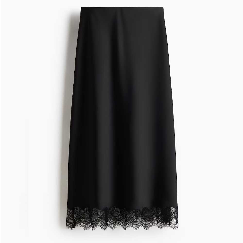 Be the first to review “Lace-Trimmed Satin Skirt Black”