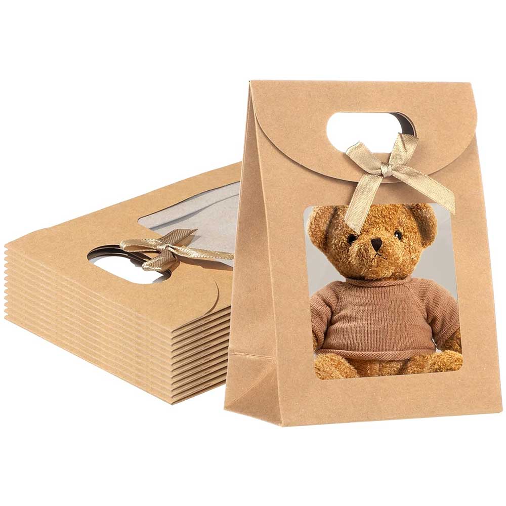 Liobelon 12 Pieces Kraft Paper Gift Bags with Clear Window