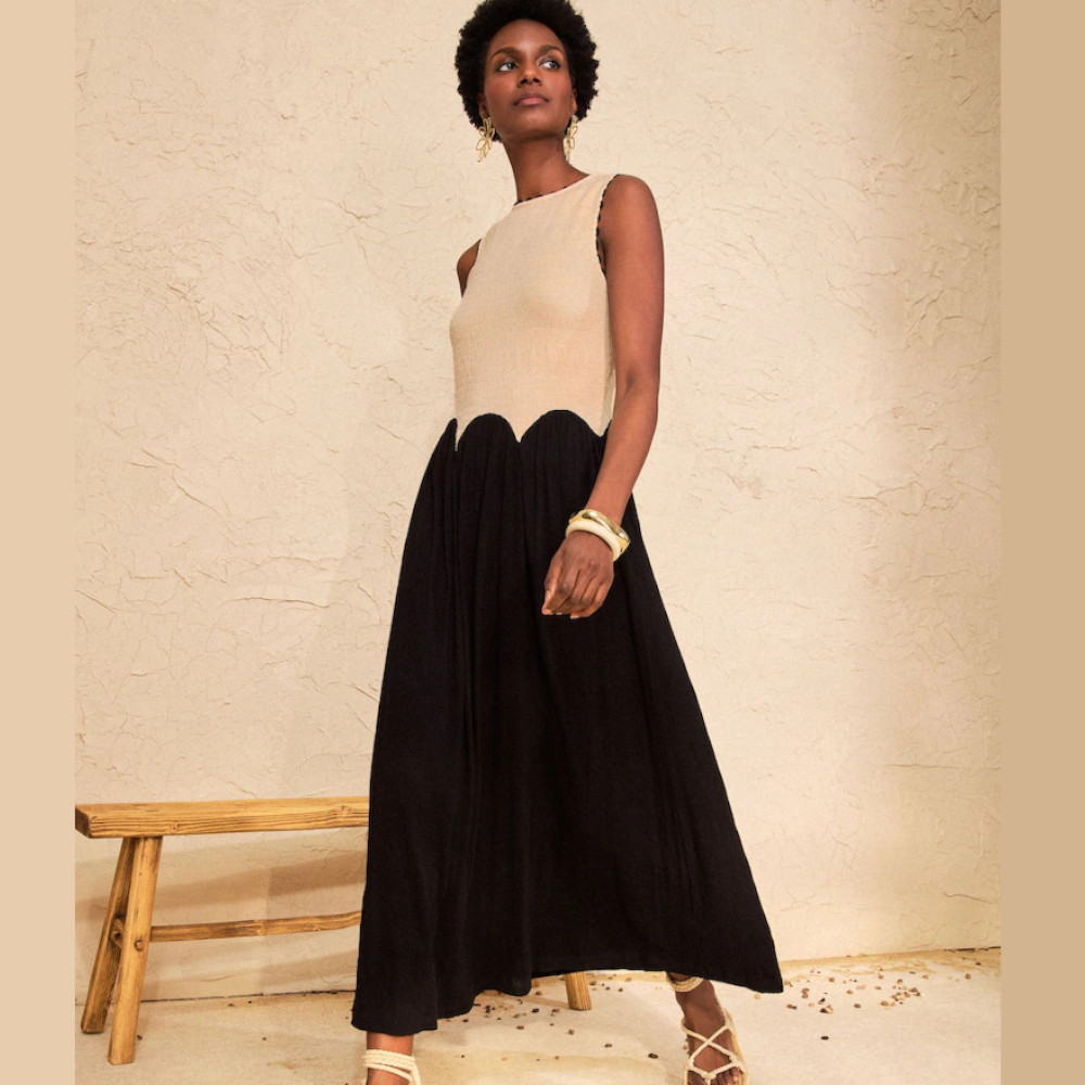 Love & Roses Monochrome Textured Contrast Jersey Midi Dress