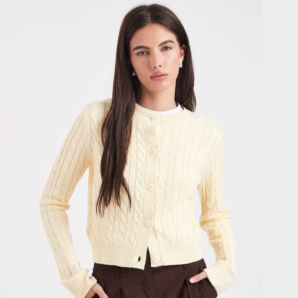 Be the first to review “Miss Selfridge cable knit crew neck cardigan in buttermilk”