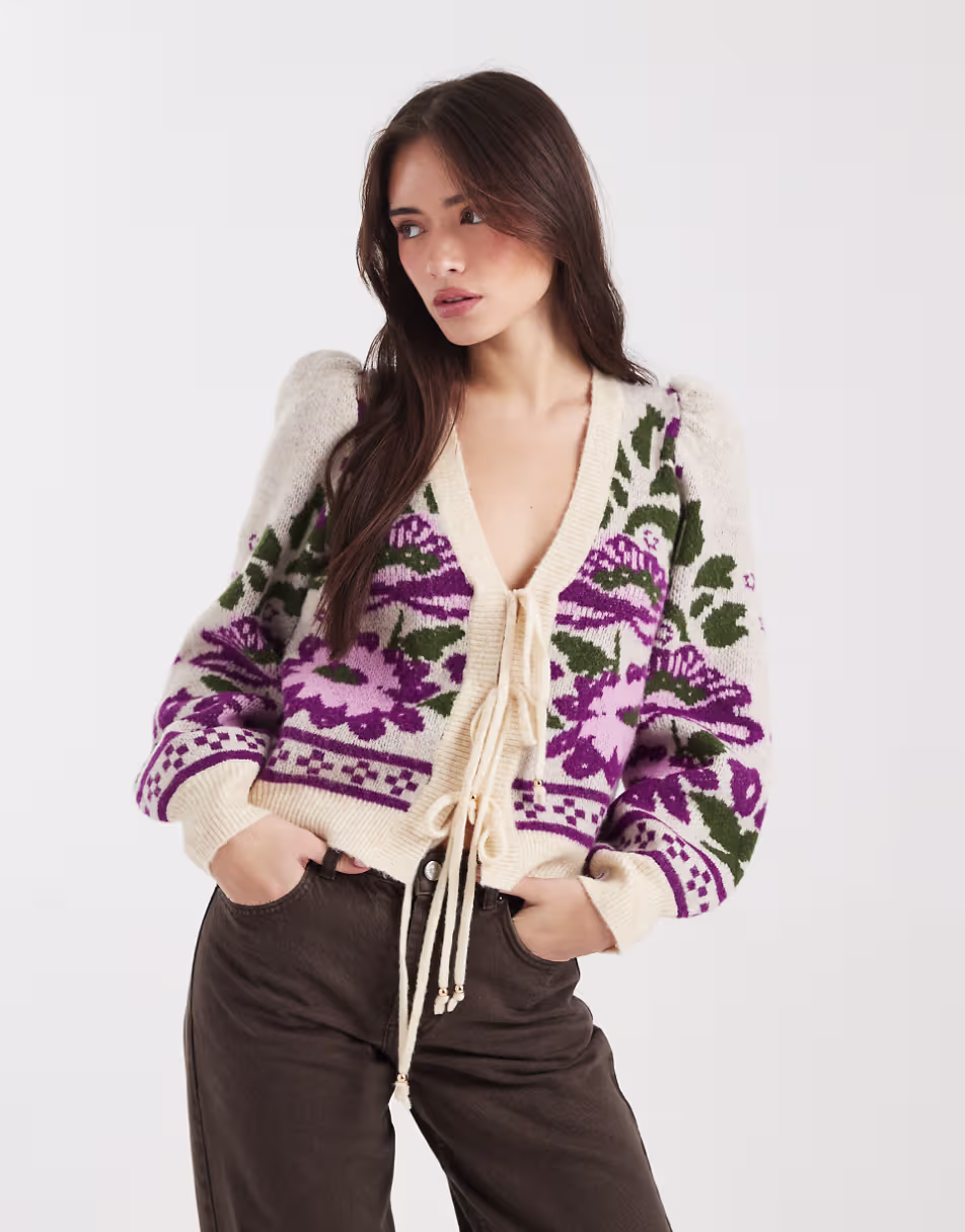 Be the first to review “Miss Selfridge puff sleeve floral tie front cardigan in multi”