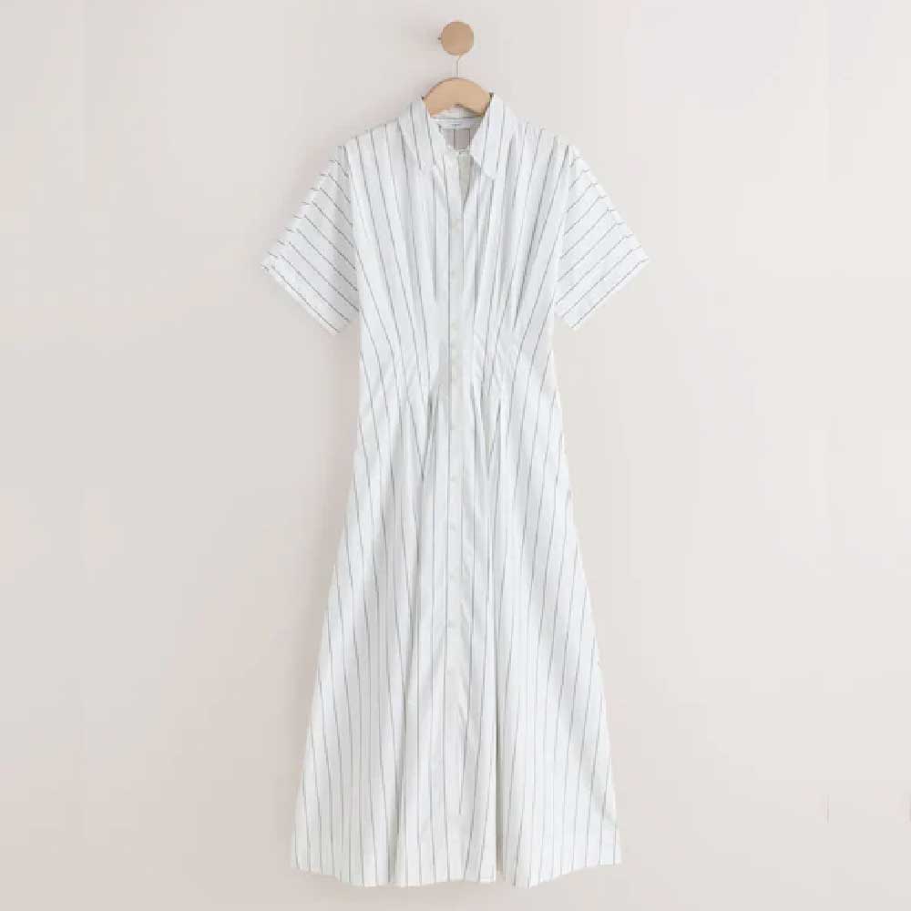 Be the first to review “Monochrome Stripe Short Sleeve Cinched Waist Midi Shirt Dress”