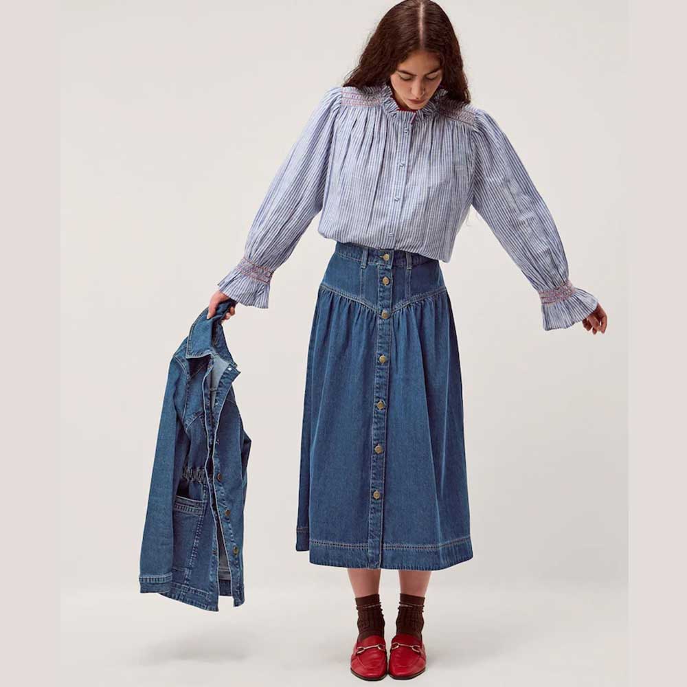 Monsoon Blue Tamsin Button Denim Midi Skirt