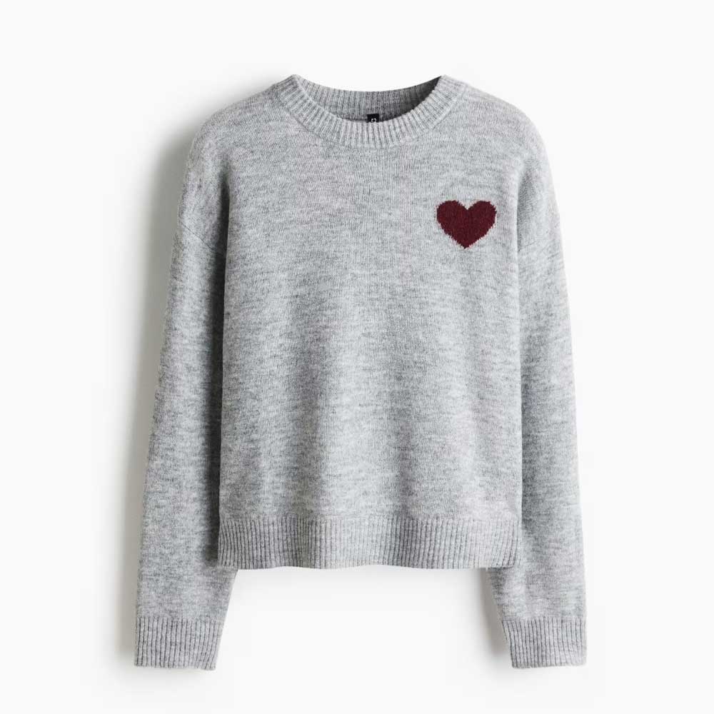 Be the first to review “Motif-Detail Sweater Gray melange/heart”