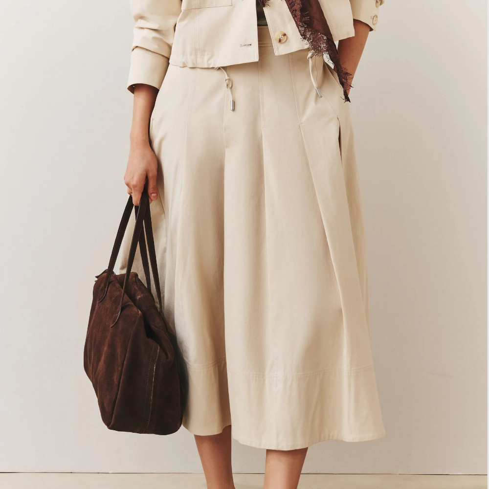 Nothing Ordinary Stone Premium Cotton Rich Tailored A-Line Midi Skirt