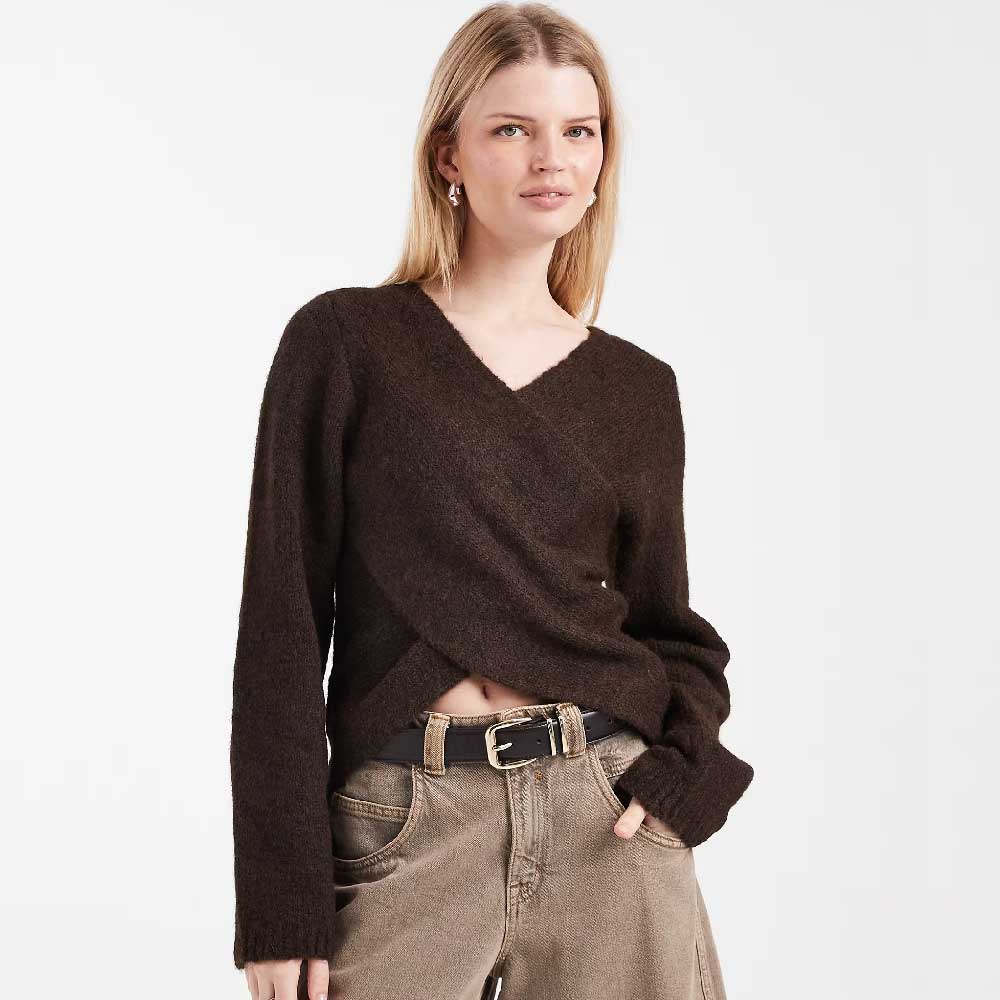 Be the first to review “ONLY reversible wrap around knit sweater in brown”