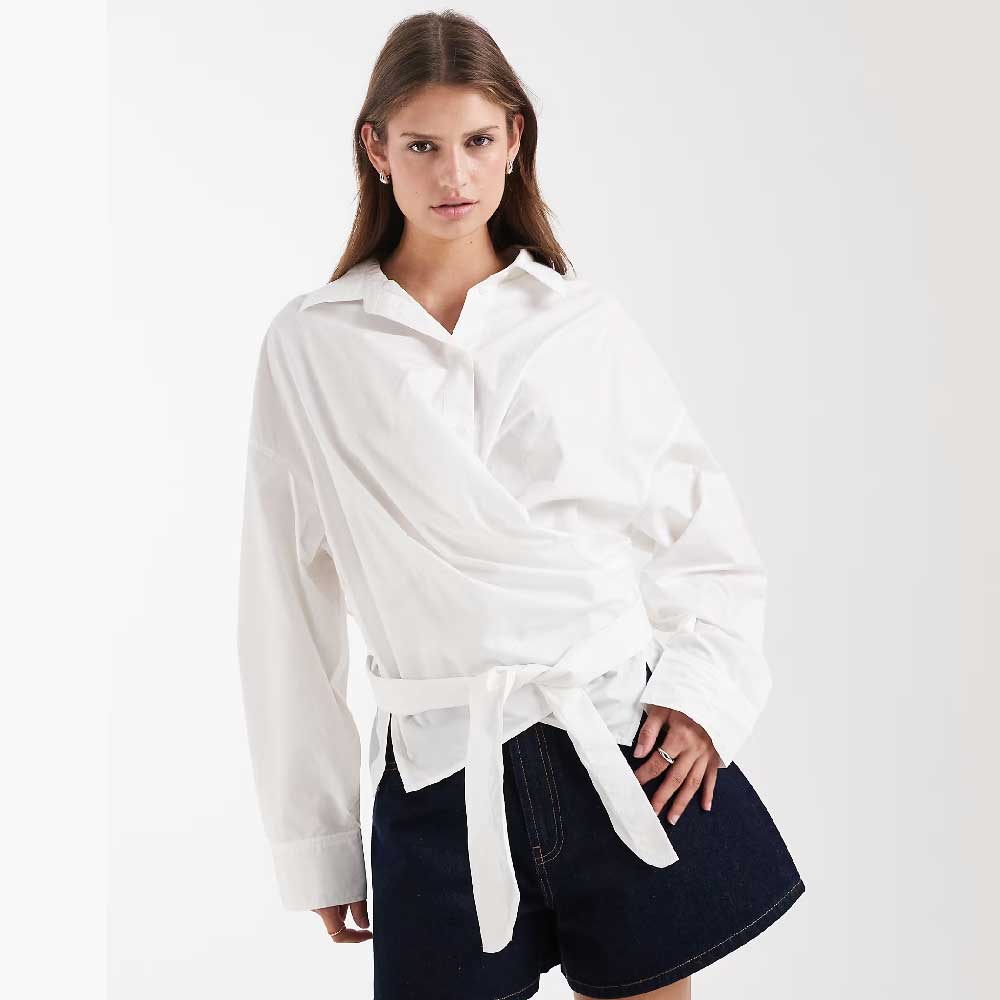 Be the first to review “& Other Stories rich cotton front tie ruched wrap shirt in white”
