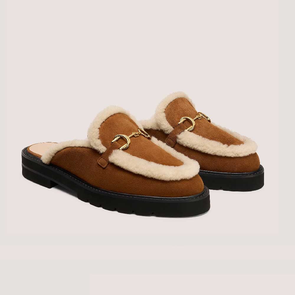OWEN BUCKLE SHEARLING MULE Cognac Brown & Natural