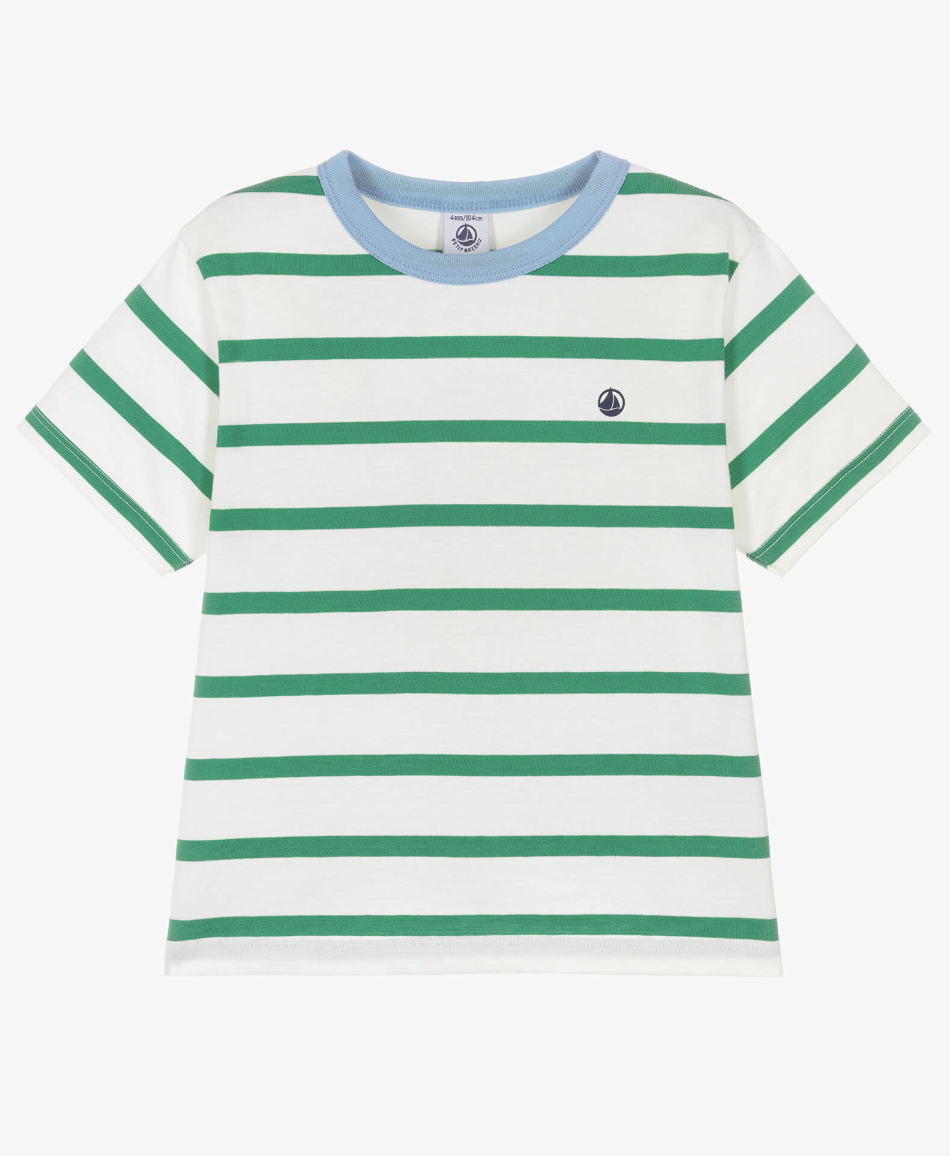 Petit Bateau Boys Ivory & Green Striped Cotton T-Shirt