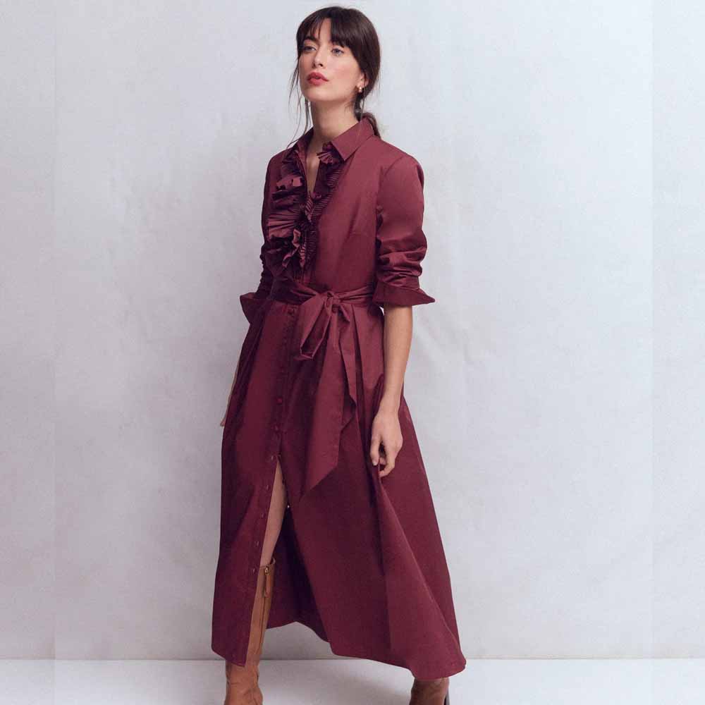Be the first to review “Pleated Ruffle Shirt Dress Deep Wisteria”