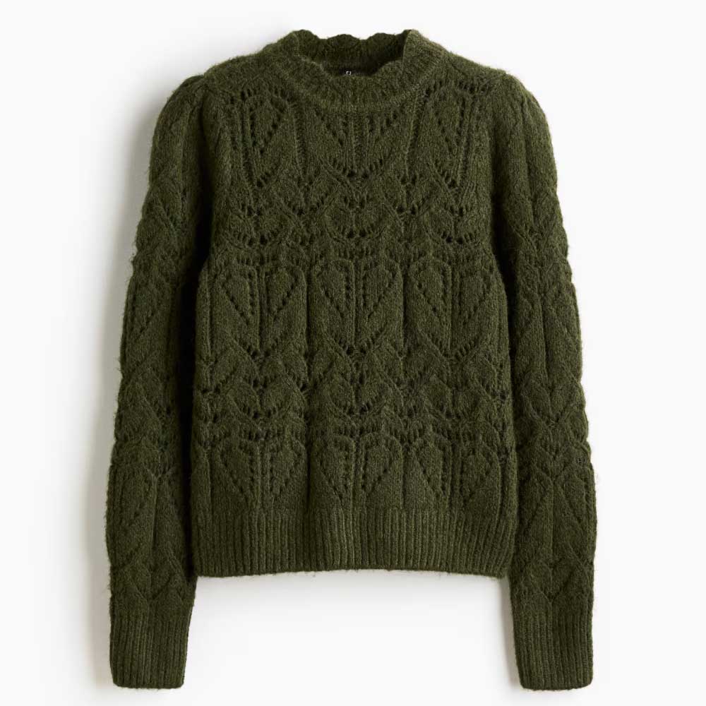 Be the first to review “Pointelle-Knit Sweater Dark green”