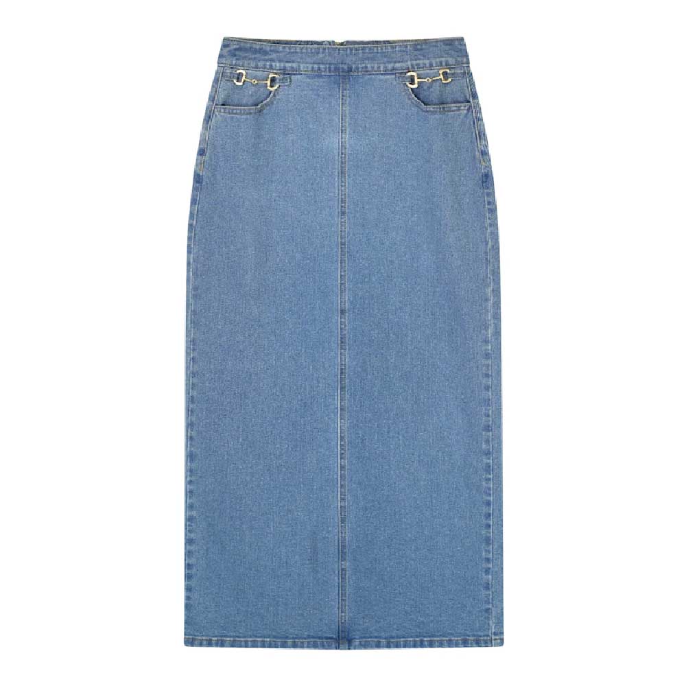 RAVE ON TREND Horsebit Denim Skirt – Light Wash