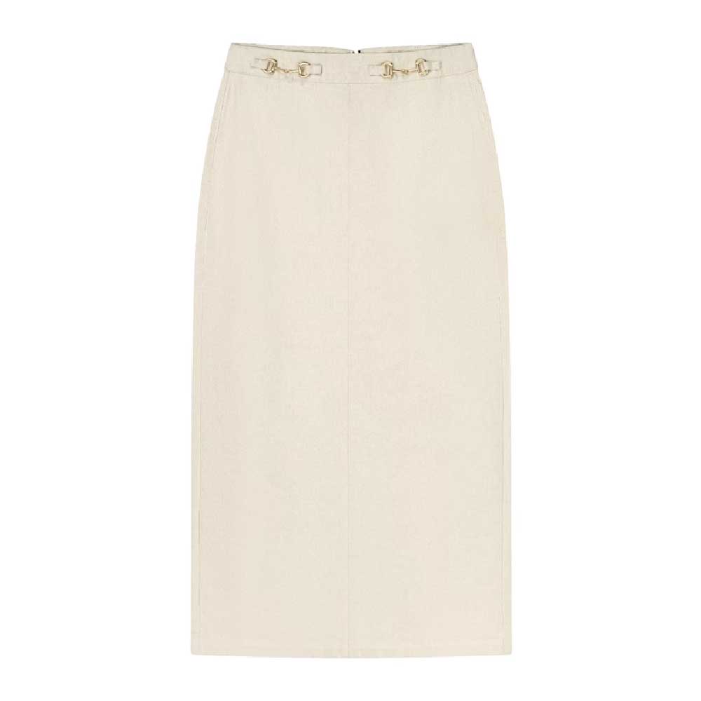 RAVE ON TREND Horsebit Denim Skirt – Neutrals
