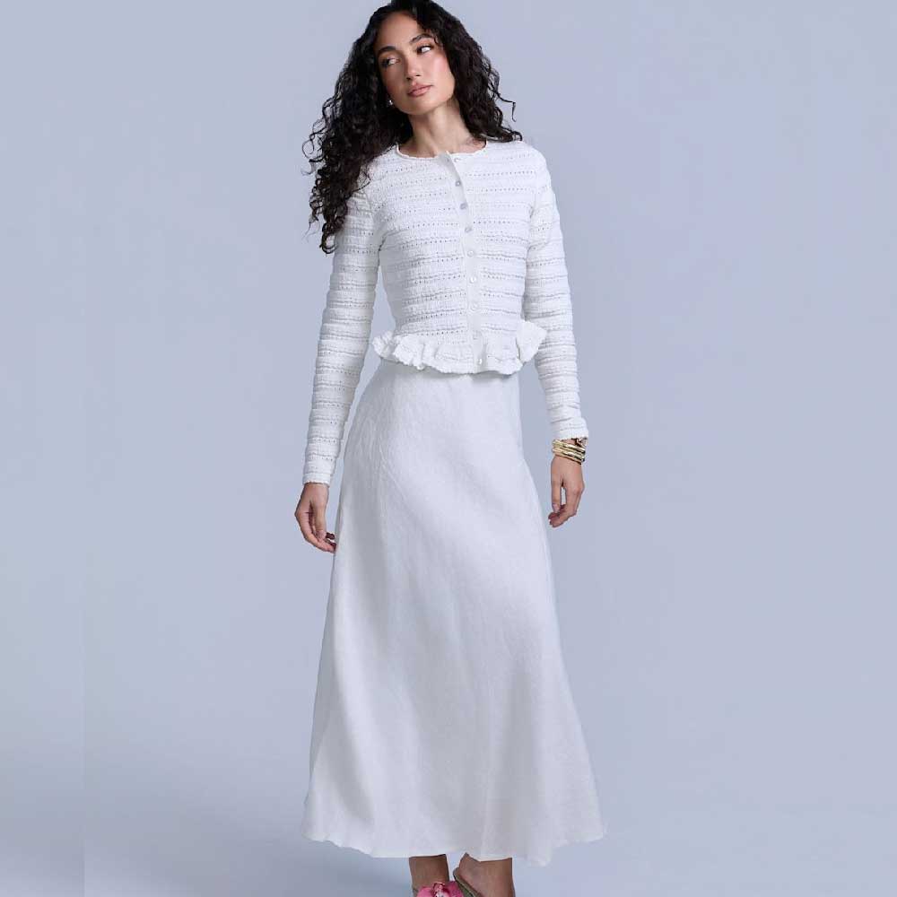 RAVE ON TREND Linen Midi Skirt – White