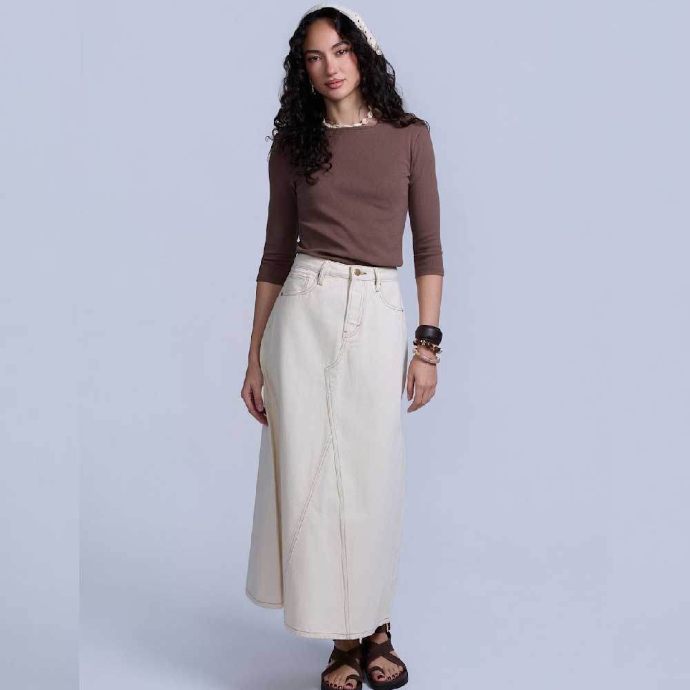 Be the first to review “RAVE ON TREND Tan Flared Denim Skirt”