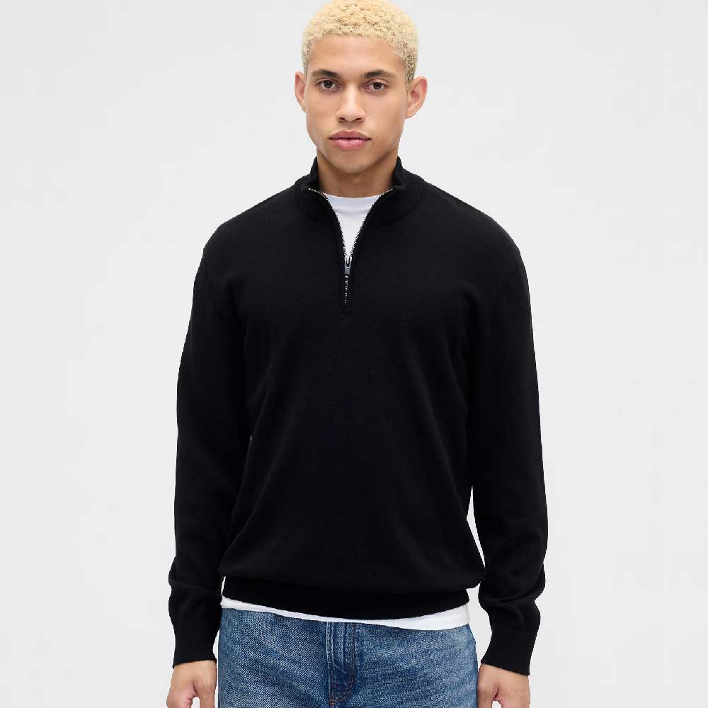 Relaxed Quarter-Zip Mockneck Sweater Black