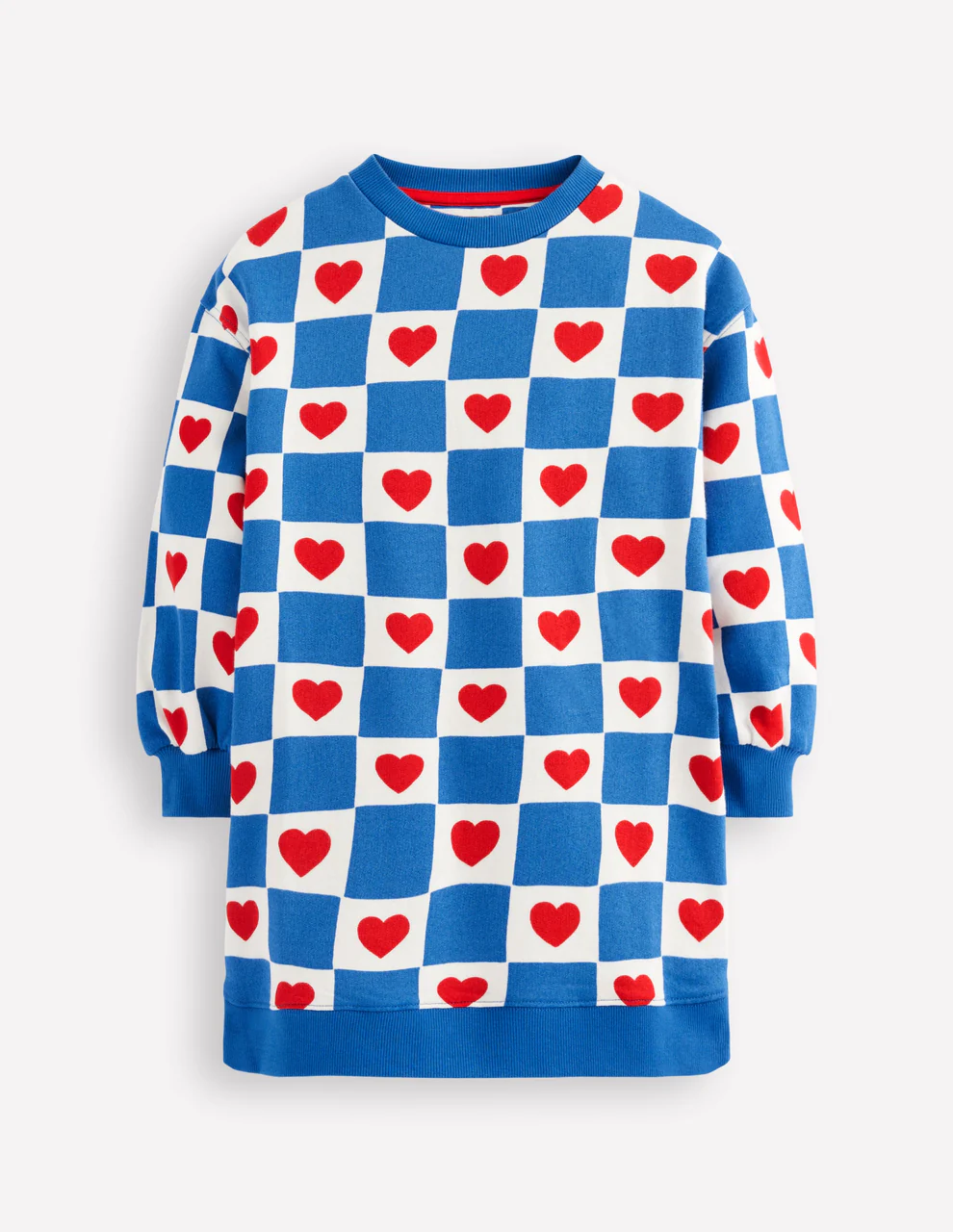 Relaxed Sweatshirt Dress Blue Heart Stamp