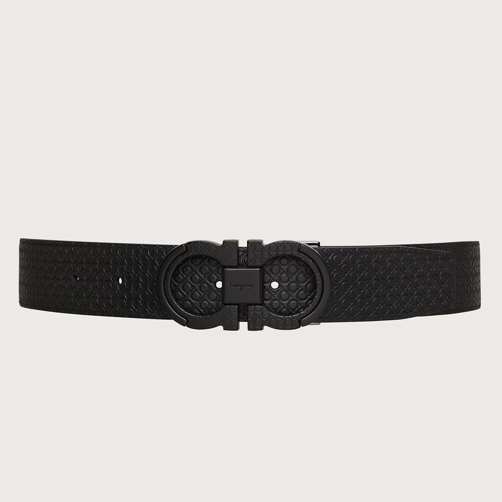 Reversible and adjustable Gancini belt Black