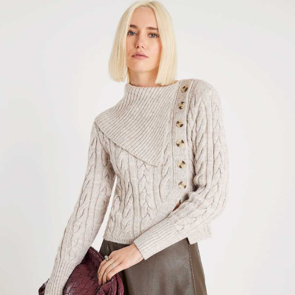 River Island Brown Cable Fold Over Jumper