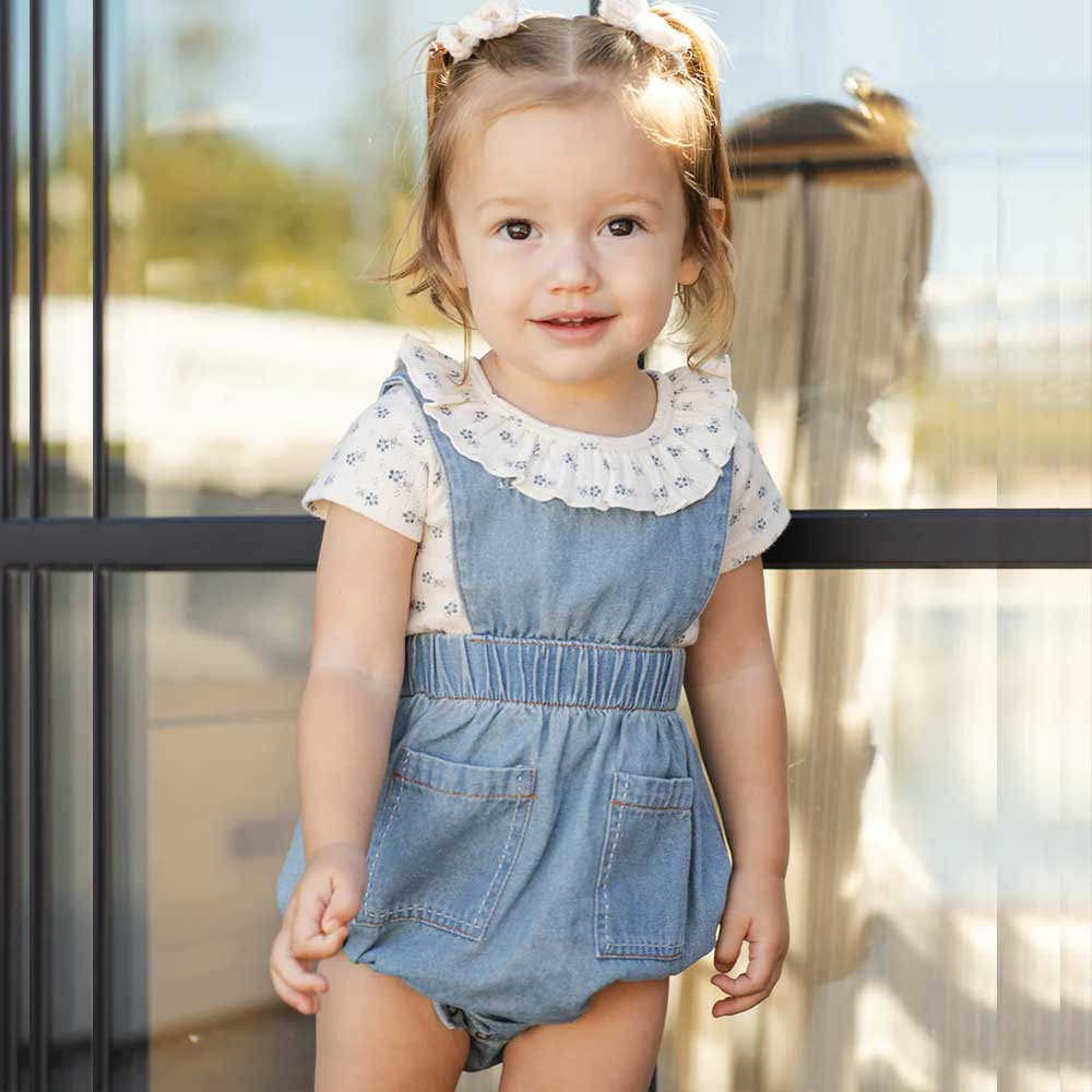 Rylee + Cru Denim Romper Washed Blue