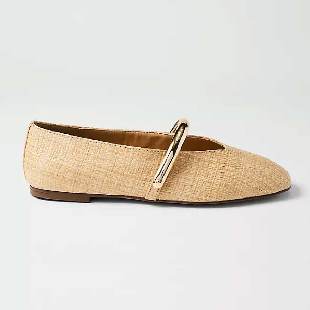 Straw Hardware Embellished Mary Jane Flat