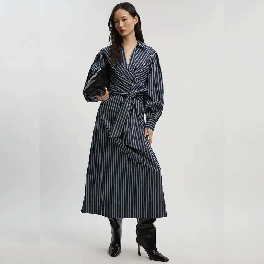 Be the first to review “Stripe Cotton Poplin Drama Sleeve Woven Wrap Detail Shirt Dress”